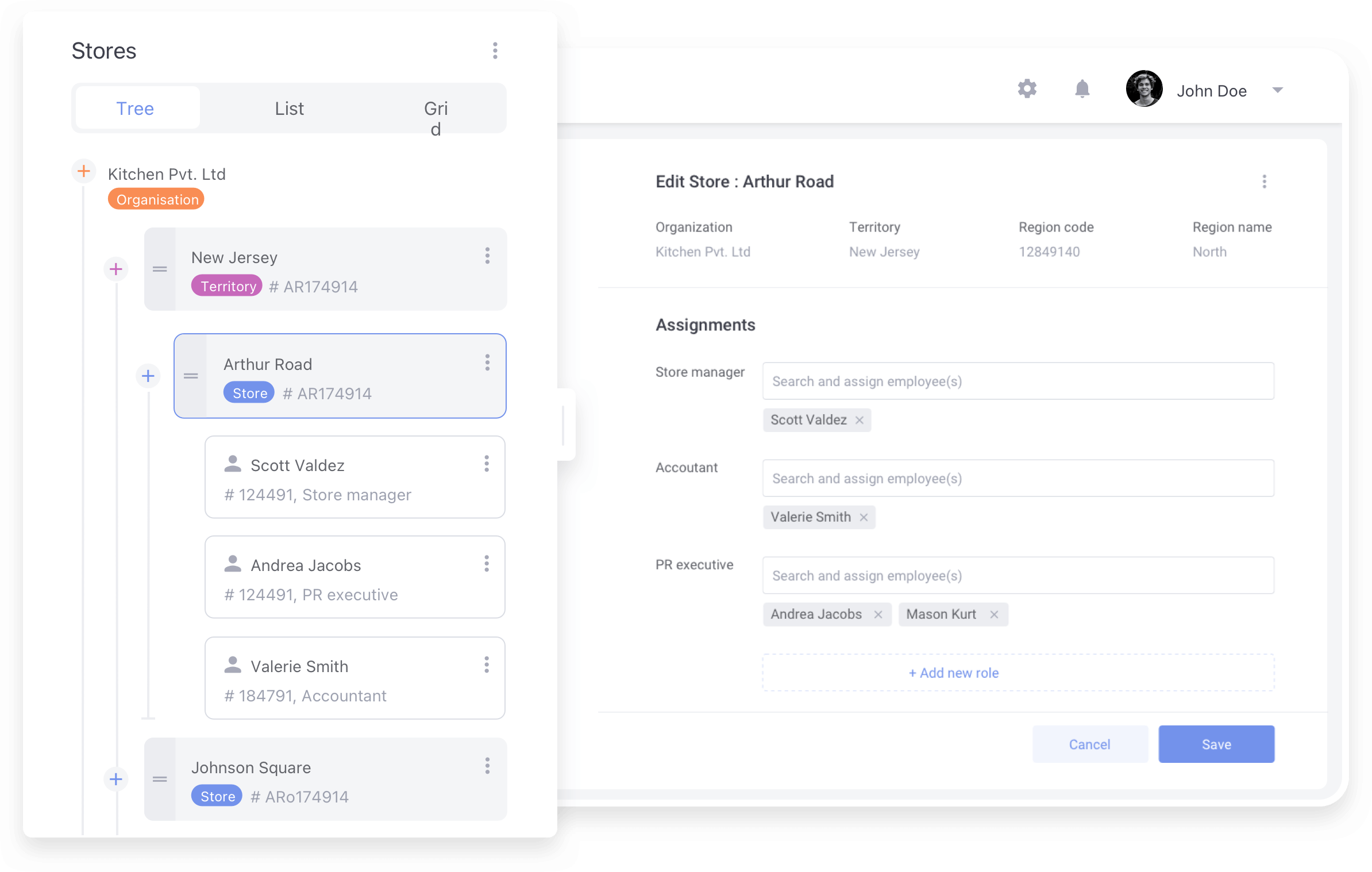 Representation of stores in a hierarchy was a very helpful view in order to view all the data in a visual way.